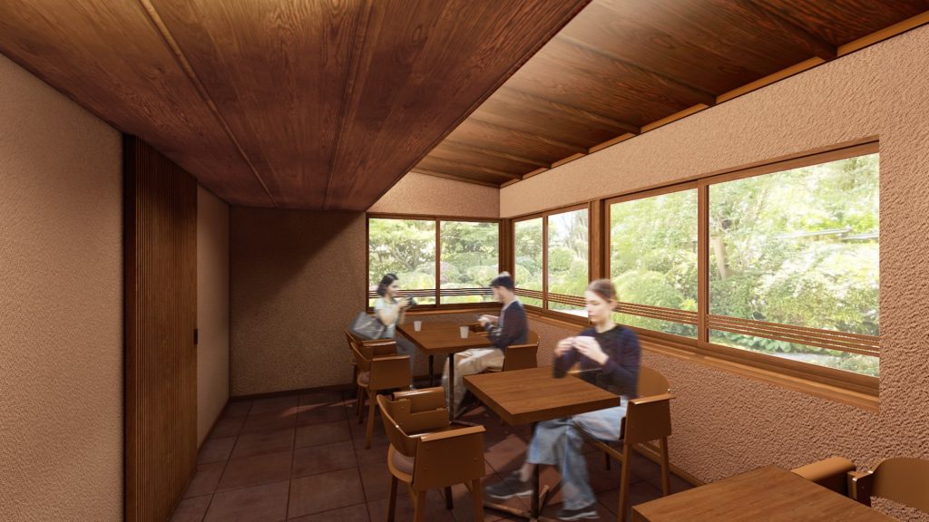 参拝や観光の途中に気軽に立ち寄っていただける立地を活かし、物販だけでなく、イートインスペースも設置。店内からは美しい四季折々の景色もお楽しみいただけます。多くの方に茅乃舎の味や香りを五感で感じていただけるような、あたたかみのある空間と商品をご用意いたします。