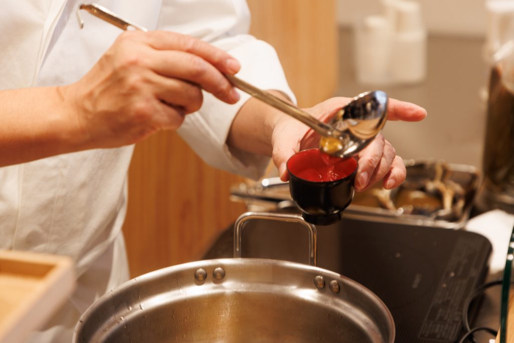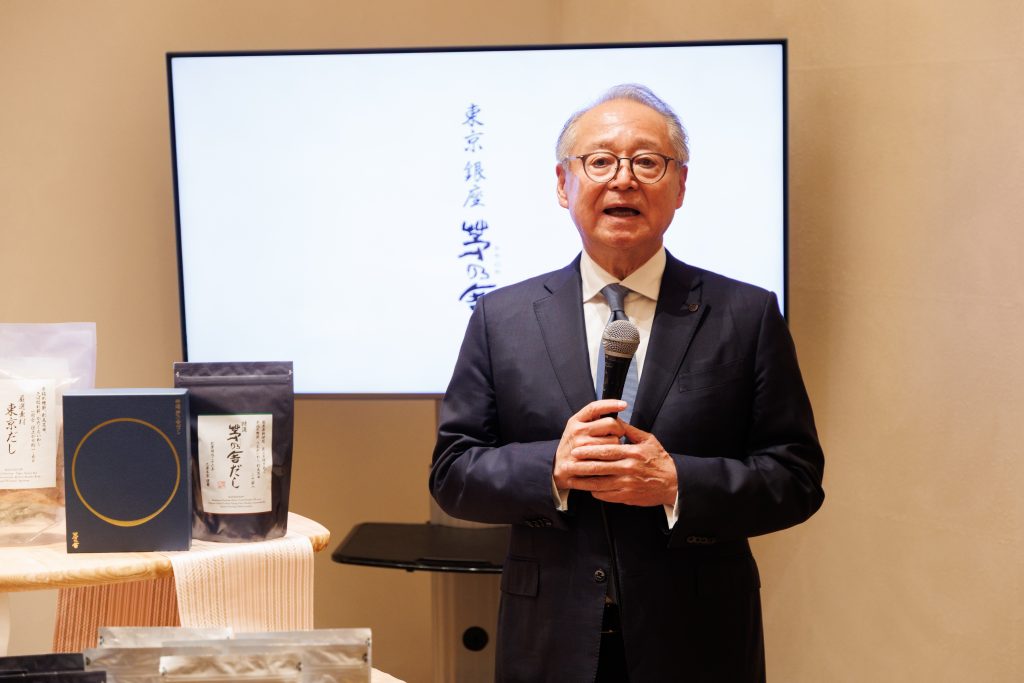 内覧会では、ご来場の皆様に茅乃舎ブランドとして初めて取り扱う「東京銀座 茅乃舎」限定の厳選した乾物を使った試食や、各地域に根差した特色ある乾物素材を組み合わせた5種類の「地域だし」の飲み比べなど、当店独自のコンテンツを一足早くご体験いただきました。