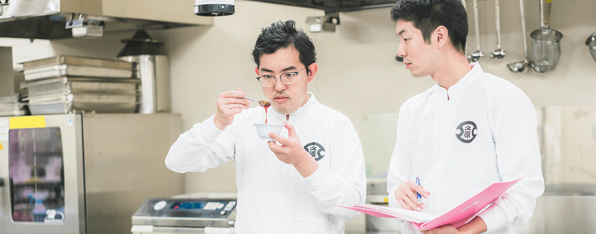 Y・K:私の場合、同僚が開発した新しいレシピを商品化につなげていく「落とし込み」の部分を担当しています。おいしい味が作れたとしても、その味を工場で大量に生産していく場合、そこには工夫と高度な技術が必要になります。おいしい味をおいしいままに商品へと落とし込んでいく、そしてお客様へお届けできる形にする。よりお客様に近いところで商品開発に携わるという緊張感とやりがいの毎日です。